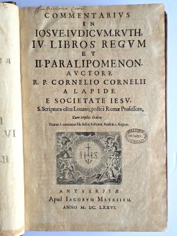 Erste Meursius-Ausgabe der berühmten Kommentare des Cornelius à Lapide (1567-1637) zu den biblischen Geschichtsbüchern Josua, Richter, Ruth.