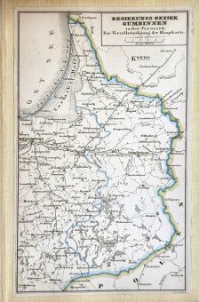 Es fehlt Karte IV, sonst komplett, auch mit der genzkolorierten Karte "Regierungs-Bezirk Gumbinnen". Bemerkenswert gut erhalten, kaum Gebrauchsspuren, kaum gebräunt.