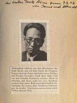 Das Exemplar stammt aus der Bibliothek des Verlegers Albrecht Knaus (1913-2007) und ist auf dem Vorsatzblatt eigenhändig von diesem seiner "lieben Tante Aini zum 7.7.46" in seinem Namen und dem seiner Frau Janne gewidmet. Zudem sind dort zwei Zeitungsausschnitte zum Autor des Buches eingeklebt. Zudem ein Nachruf auf diesen auf dem inneren Vorderdeckel.