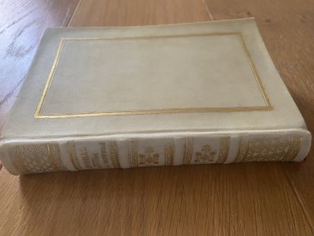 Pergament der Zeit mit üppiger Rückenvergoldung und -titel (Schön erhalten; vorderer und hinterer Deckel etwas aufgebogen).